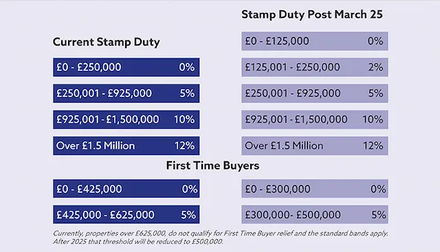 Standard Purchases: The nil-rate threshold will reduce from £250,000 to £125,000. As a result, more buyers will need to pay Stamp Duty on lower-value homes.